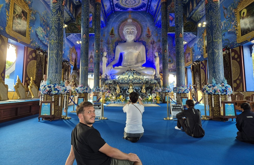 Le Wat Rong Seua Ten est un temple moderne qui se distingue par sa couleur dominante bleu vif et ses sculptures raffinées uniques. Il est situé à quelques kilomètres du centre de Chiang Rai avant le musée de la Maison noir. Suea Ten signifie le tigre dansant, car on dit qu’avant des tigres bondissaient par-dessus la rivière. L’entrée est gratuite et le temple est accessible de 8h à 20h.